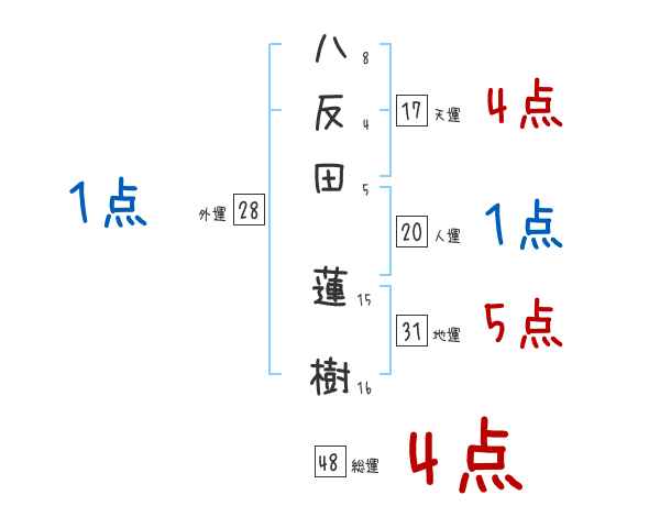 外運![]() | 八反田蓮樹さんの外運は28画の1つ星!家庭環境に注意。スポーツで活躍できる能力があるかも。 生活面を象徴する運勢です。外部から受ける影響力を表し、結婚運、家庭運や職場、環境への順応性を表します。 |
