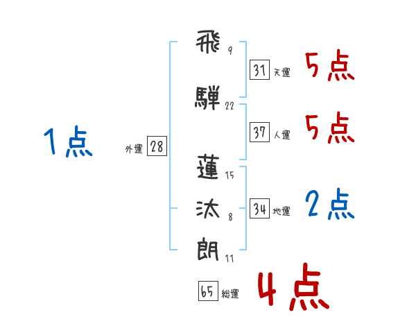 外運![]() | 飛騨蓮汰朗さんの外運は28画の1つ星!家庭環境に注意。スポーツで活躍できる能力があるかも。 生活面を象徴する運勢です。外部から受ける影響力を表し、結婚運、家庭運や職場、環境への順応性を表します。 |