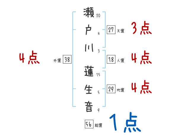 人運![]() | 瀬戸川蓮生音さんの人運は18画の4つ星!情熱的で剛気。忍耐力があり信頼される。 性格や才能などを表す2番目に重要な運勢です。人間関係や協調性、社会的な成功に影響します。主に20歳から50歳ぐらいまでの中年期の運勢を表します。 |
