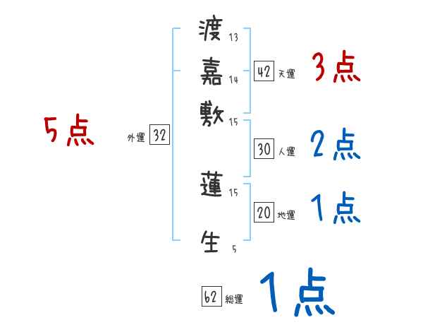 渡嘉敷蓮生さんの画数の鑑定結果