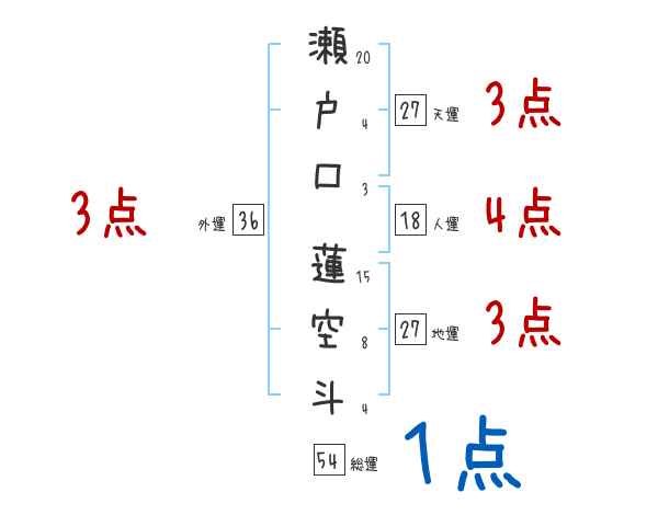 瀬戸口蓮空斗さんの画数の鑑定結果