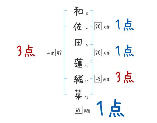 和佐田蓮緒菜さんの画数の鑑定結果