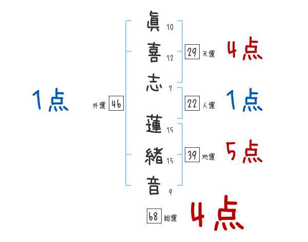 人運![]() | 眞喜志蓮緒音さんの人運は22画の1つ星!努力することが苦手ないっぽう手先が器用。芸術性にも優れる。 性格や才能などを表す2番目に重要な運勢です。人間関係や協調性、社会的な成功に影響します。主に20歳から50歳ぐらいまでの中年期の運勢を表します。 |