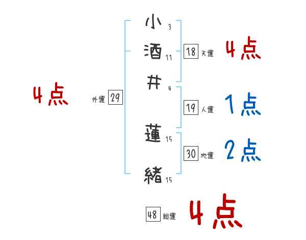 小酒井蓮緒さんの画数の鑑定結果