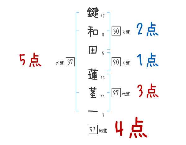 鍵和田蓮茎一さんの画数の鑑定結果