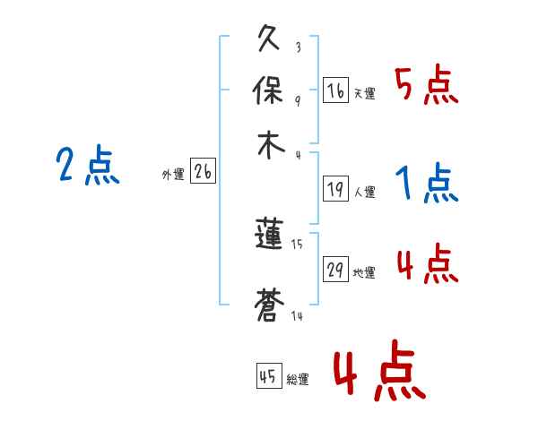 地運![]() | 久保木蓮蒼さんの地運は29画の4つ星!完全主義で才能がある。厳格な心の持ち主。 個性を表す基礎的な運勢です。性格形成や対人関係、行動力など家庭環境に影響されます。主に誕生してから20歳くらいまでの若年期の運勢を表します。 |
