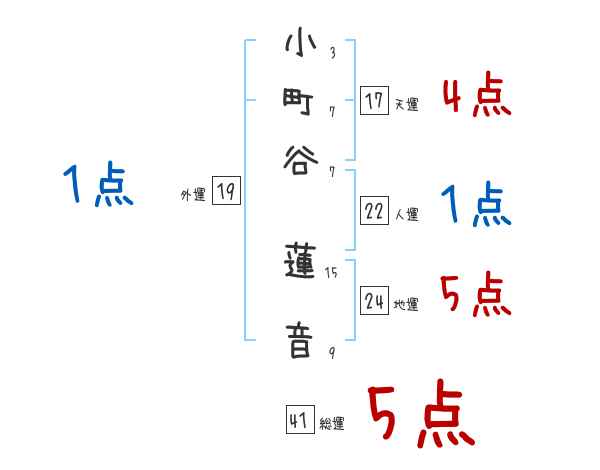 外運![]() | 小町谷蓮音さんの外運は19画の1つ星!優れた才能を持ちますが、協調性が足りないことも。周りの人と協力する事を意識しましょう。 生活面を象徴する運勢です。外部から受ける影響力を表し、結婚運、家庭運や職場、環境への順応性を表します。 |