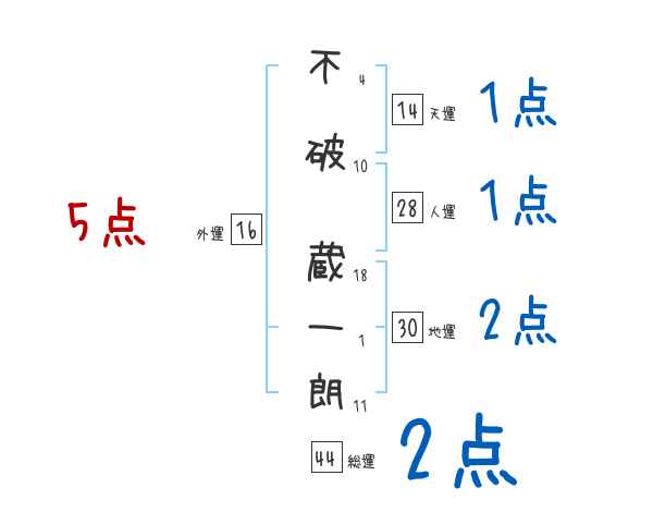 外運![]() | 不破蔵一朗さんの外運は16画の5つ星!人望が厚く大きく発展する。逆転成功が見える。 生活面を象徴する運勢です。外部から受ける影響力を表し、結婚運、家庭運や職場、環境への順応性を表します。 |