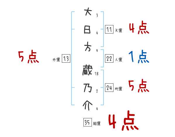 大日方蔵乃介さんの画数の鑑定結果