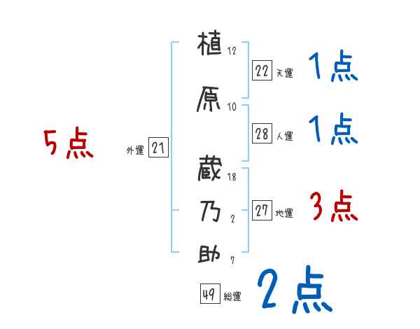 外運![]() | 植原蔵乃助さんの外運は21画の5つ星!統率力がある。独立し成功する。名誉を手に入れる。 生活面を象徴する運勢です。外部から受ける影響力を表し、結婚運、家庭運や職場、環境への順応性を表します。 |