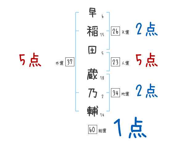 早稲田蔵乃輔さんの画数の鑑定結果