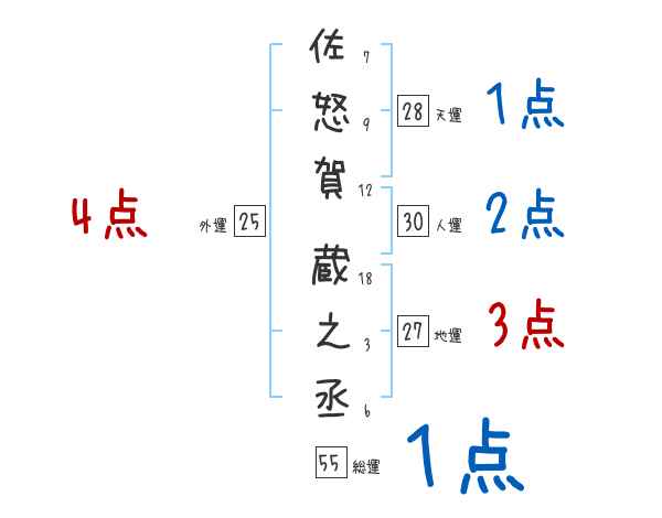 佐怒賀蔵之丞さんの画数の鑑定結果