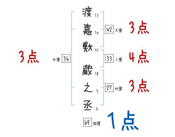 渡嘉敷蔵之丞さんの画数の鑑定結果
