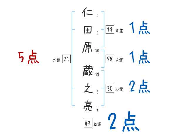 仁田原蔵之亮さんの画数の鑑定結果