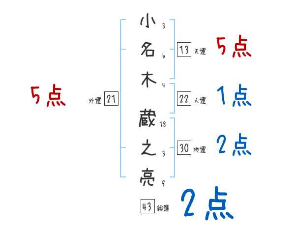 小名木蔵之亮さんの画数の鑑定結果