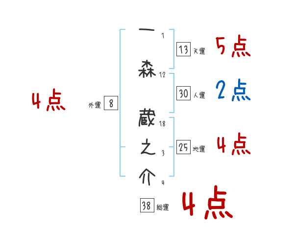 総運![]() | 一森蔵之介さんの総運は38画の4つ星!温厚な性格で技術的な才能を発揮する。職人的な仕事に向いている。 あなたの人生を表す1番重要な運勢です。生涯を通じて影響する総合運となり、主に50歳以降の晩年期に影響を及ぼします。 |