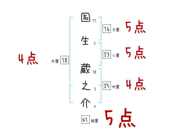 天運![]() | 国生蔵之介さんの天運は16画の5つ星!人望が厚く大きく発展する。逆転成功が見える。 家系が持つ宿命的な運勢を表します。祖先から受け継いだ苗字ですので自分の力が及びません。家柄を象徴します。 |
