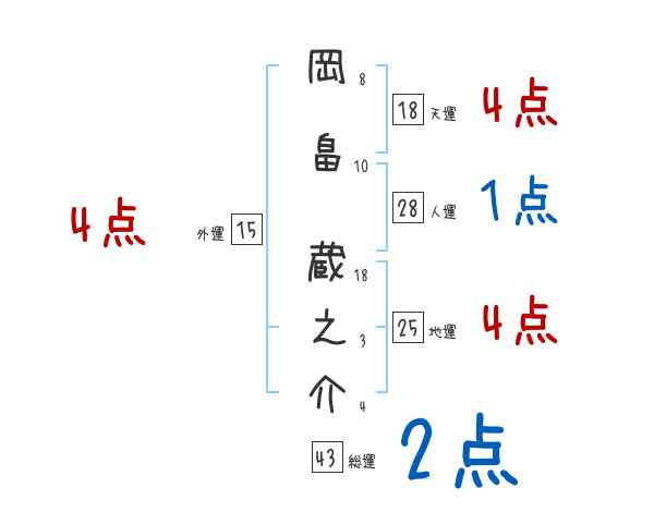 岡畠蔵之介さんの画数の鑑定結果