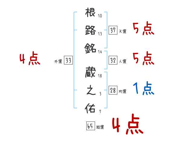根路銘蔵之佑さんの画数の鑑定結果