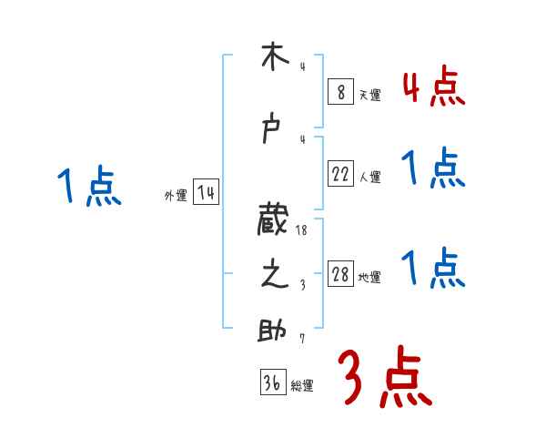 総運![]() | 木戸蔵之助さんの総運は36画の3つ星!先見性が豊かです。多少神経質で苦労することも。 あなたの人生を表す1番重要な運勢です。生涯を通じて影響する総合運となり、主に50歳以降の晩年期に影響を及ぼします。 |