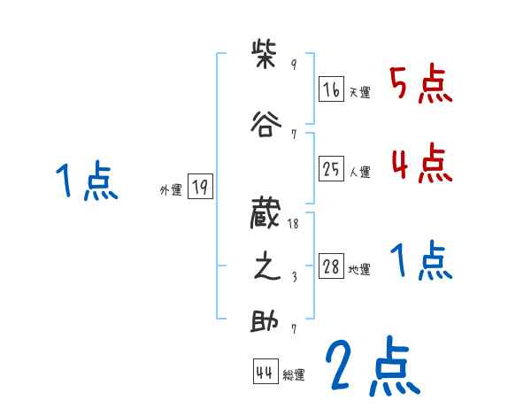 外運![]() | 柴谷蔵之助さんの外運は19画の1つ星!優れた才能を持ちますが、協調性が足りないことも。周りの人と協力する事を意識しましょう。 生活面を象徴する運勢です。外部から受ける影響力を表し、結婚運、家庭運や職場、環境への順応性を表します。 |