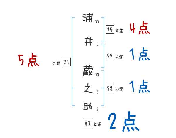 外運![]() | 浦井蔵之助さんの外運は21画の5つ星!統率力がある。独立し成功する。名誉を手に入れる。 生活面を象徴する運勢です。外部から受ける影響力を表し、結婚運、家庭運や職場、環境への順応性を表します。 |
