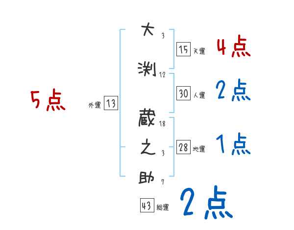 大渕蔵之助さんの画数の鑑定結果
