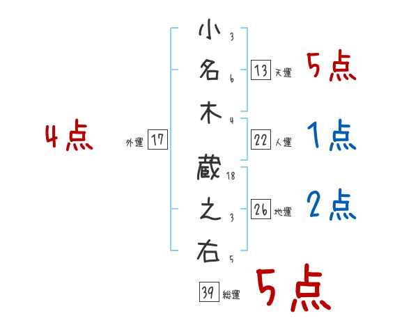 小名木蔵之右さんの画数の鑑定結果