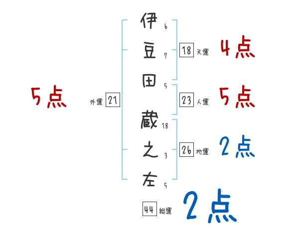 伊豆田蔵之左さんの画数の鑑定結果