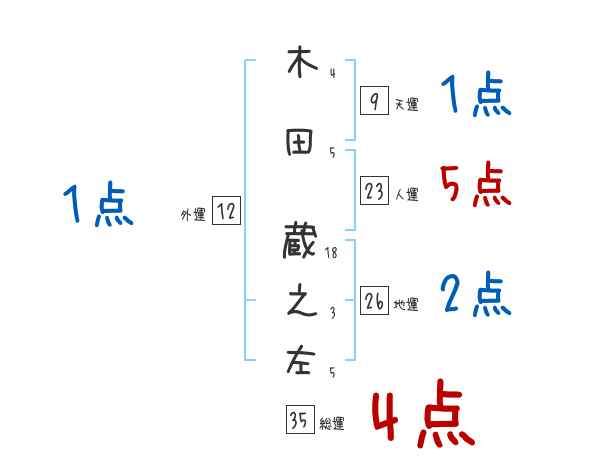 木田蔵之左さんの画数の鑑定結果