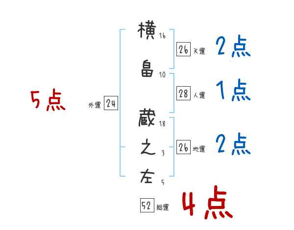 横畠蔵之左さんの画数の鑑定結果