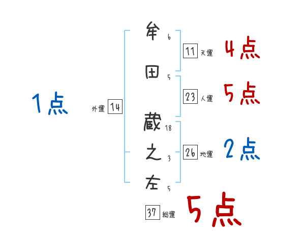 牟田蔵之左さんの画数の鑑定結果