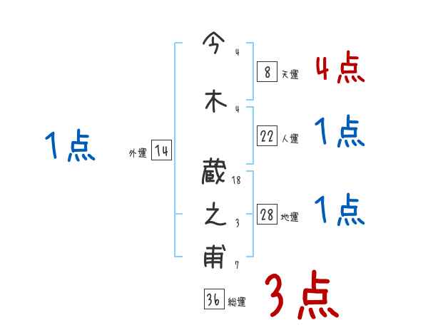 総運![]() | 今木蔵之甫さんの総運は36画の3つ星!先見性が豊かです。多少神経質で苦労することも。 あなたの人生を表す1番重要な運勢です。生涯を通じて影響する総合運となり、主に50歳以降の晩年期に影響を及ぼします。 |