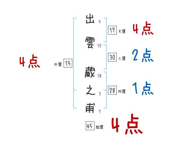 出雲蔵之甫さんの画数の鑑定結果