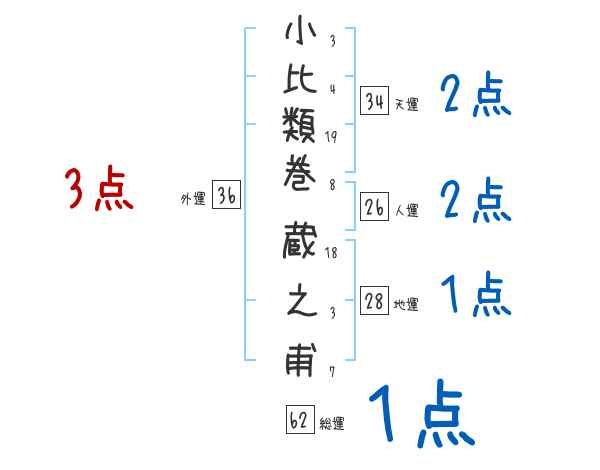 外運![]() | 小比類巻蔵之甫さんの外運は36画の3つ星!先見性が豊かです。多少神経質で苦労することも。 生活面を象徴する運勢です。外部から受ける影響力を表し、結婚運、家庭運や職場、環境への順応性を表します。 |