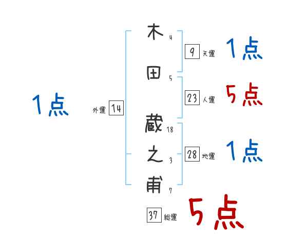 天運![]() | 木田蔵之甫さんの天運は9画の1つ星!消極的で才能を発揮することが苦手なことも。周りの意見に耳を傾けましょう。 家系が持つ宿命的な運勢を表します。祖先から受け継いだ苗字ですので自分の力が及びません。家柄を象徴します。 |