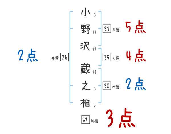 小野沢蔵之相さんの画数の鑑定結果