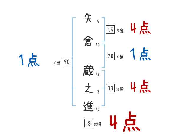 矢倉蔵之進さんの画数の鑑定結果