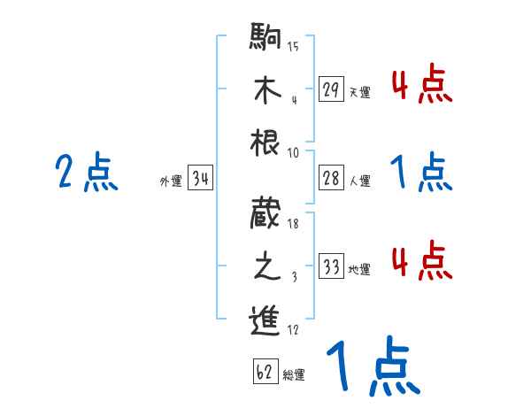 駒木根蔵之進さんの画数の鑑定結果