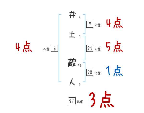 人運![]() | 井土蔵人さんの人運は21画の5つ星!統率力がある。独立し成功する。名誉を手に入れる。 性格や才能などを表す2番目に重要な運勢です。人間関係や協調性、社会的な成功に影響します。主に20歳から50歳ぐらいまでの中年期の運勢を表します。 |