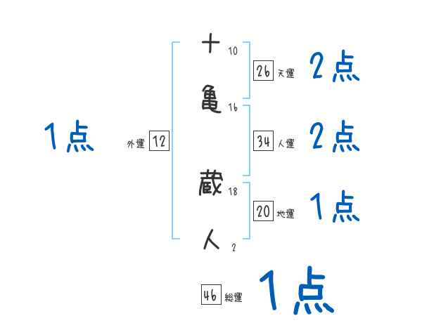 外運![]() | 十亀蔵人さんの外運は12画の1つ星!簡単な失敗で諦めてしまいやすいかも。着実に行動すると良いでしょう。 生活面を象徴する運勢です。外部から受ける影響力を表し、結婚運、家庭運や職場、環境への順応性を表します。 |