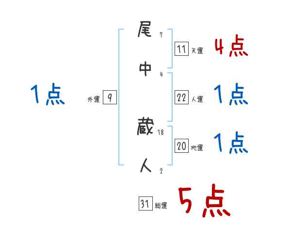 尾中蔵人さんの画数の鑑定結果