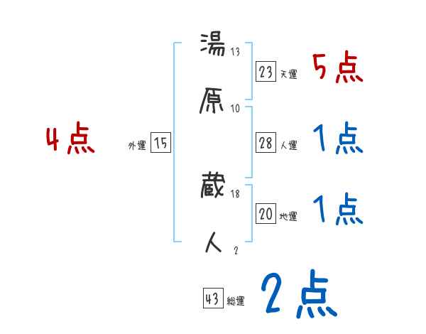 湯原蔵人さんの画数の鑑定結果
