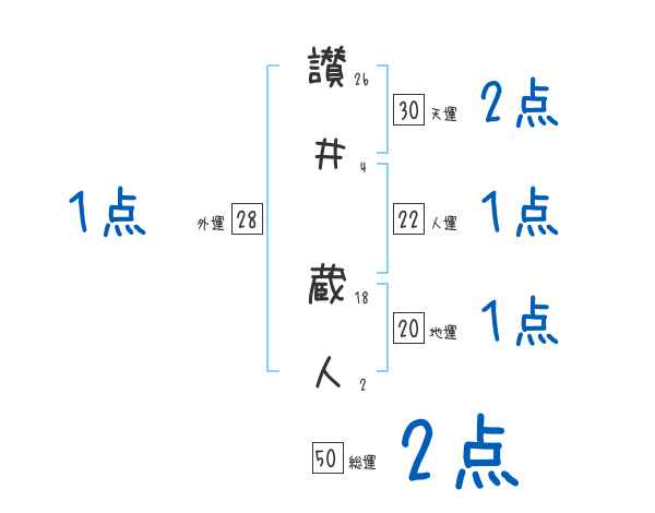 天運![]() | 讃井蔵人さんの天運は30画の2つ星!浮き沈みの激しさに注意しましょう。 家系が持つ宿命的な運勢を表します。祖先から受け継いだ苗字ですので自分の力が及びません。家柄を象徴します。 |
