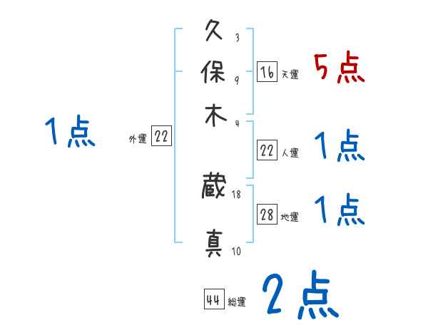 人運![]() | 久保木蔵真さんの人運は22画の1つ星!努力することが苦手ないっぽう手先が器用。芸術性にも優れる。 性格や才能などを表す2番目に重要な運勢です。人間関係や協調性、社会的な成功に影響します。主に20歳から50歳ぐらいまでの中年期の運勢を表します。 |