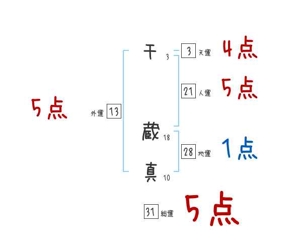 人運![]() | 千蔵真さんの人運は21画の5つ星!統率力がある。独立し成功する。名誉を手に入れる。 性格や才能などを表す2番目に重要な運勢です。人間関係や協調性、社会的な成功に影響します。主に20歳から50歳ぐらいまでの中年期の運勢を表します。 |