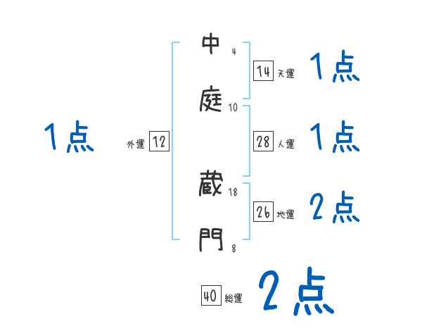中庭蔵門さんの総運は40画の2つ星