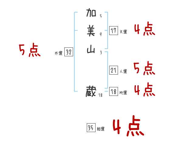 加美山蔵さんの画数の鑑定結果