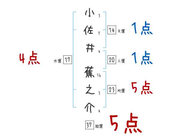 小佐井蕉之介さんの画数の鑑定結果
