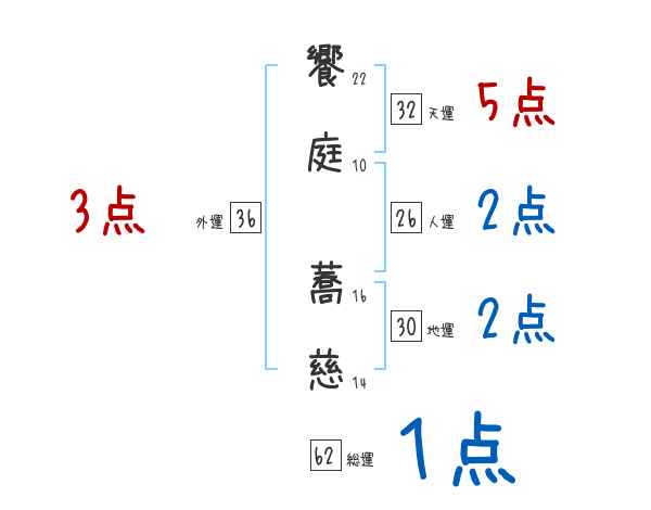 饗庭蕎慈さんの画数の鑑定結果